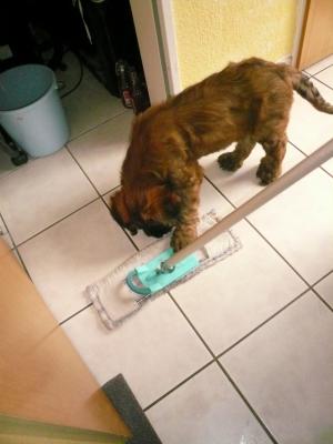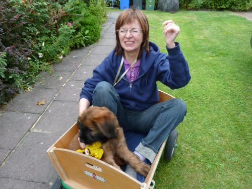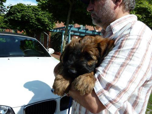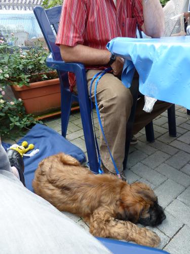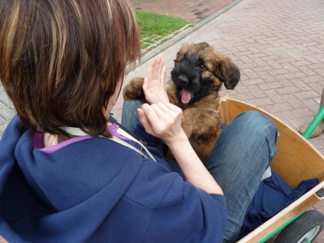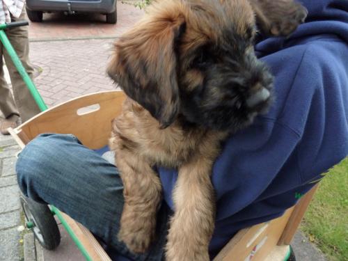 Am nächsten Tag sind die Drei dann wieder los gezogen, mit Bollerwagen, Wasserflasche, Spielzeug und Hundedecke. Ein Briard will halt immer bei der Familie sein :)