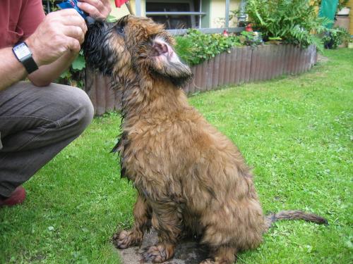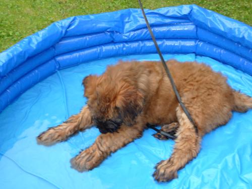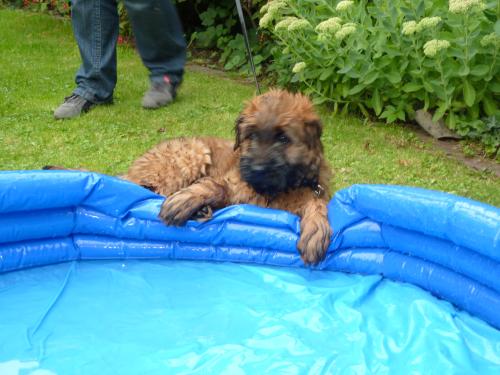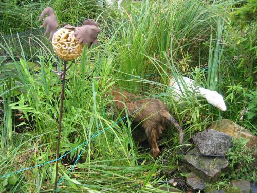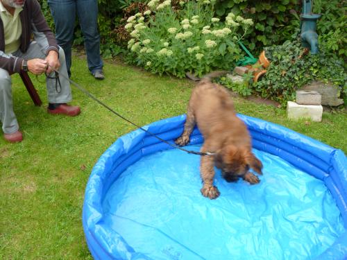 Hoffentlich läßt er sich davon überzeugen, dass es besser ist als der Teich...